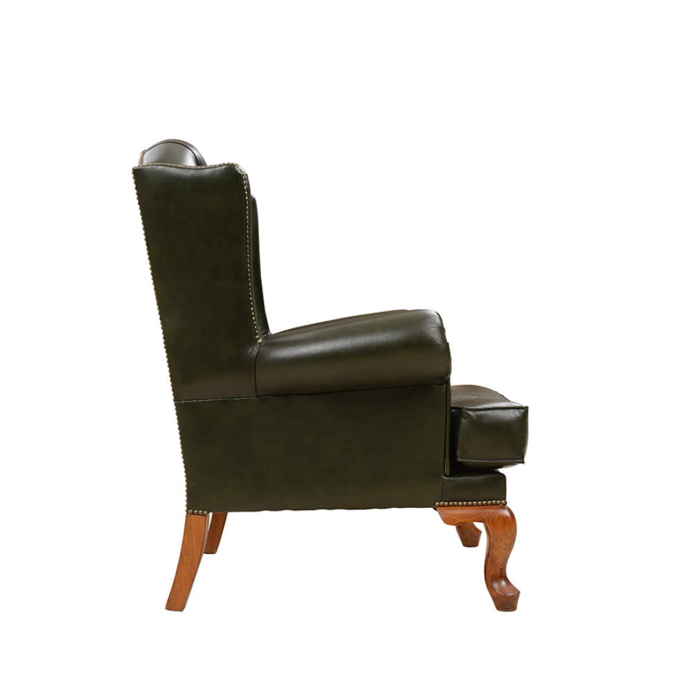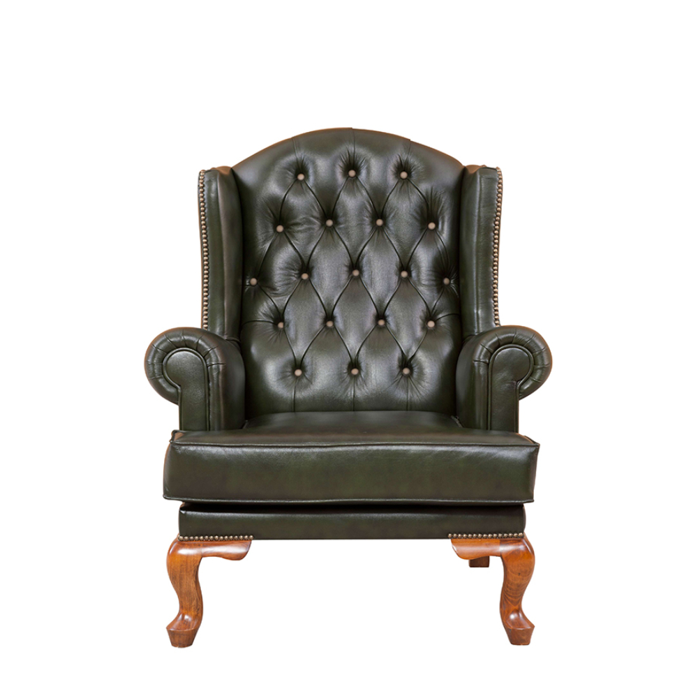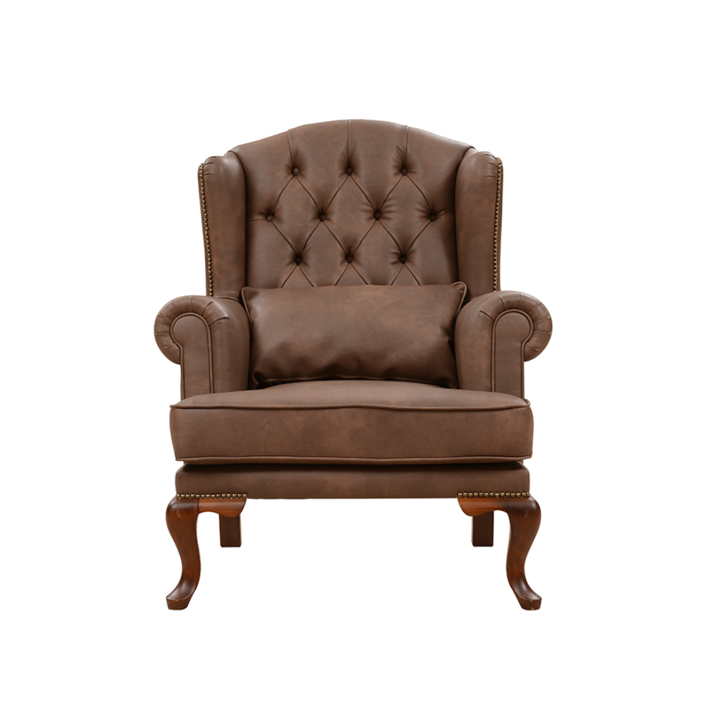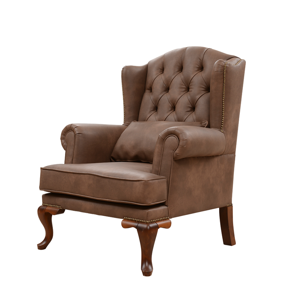 Gerçek deri döşemeli , kapitoneli ahşap ayaklı berjer.