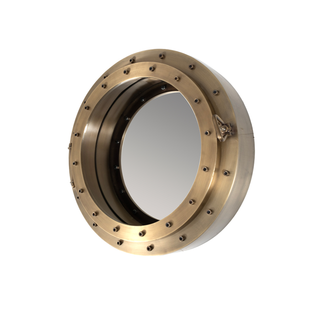 Pirinç çerçeveli dairesel ayna.