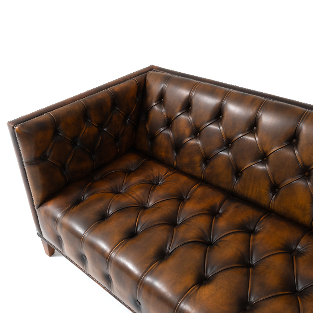 Deri döşemeli, kapitoneli chester.