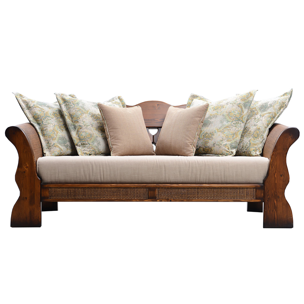 Kolları hasırlı, kumaş döşemeli ikili koltuk.