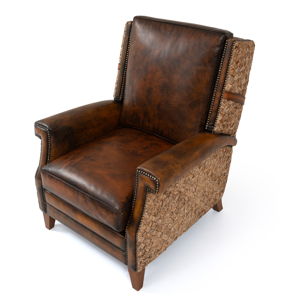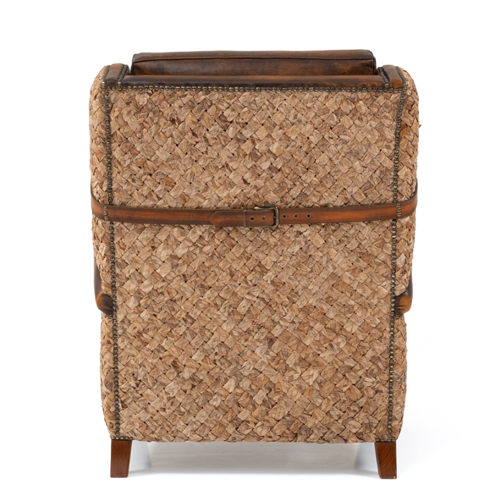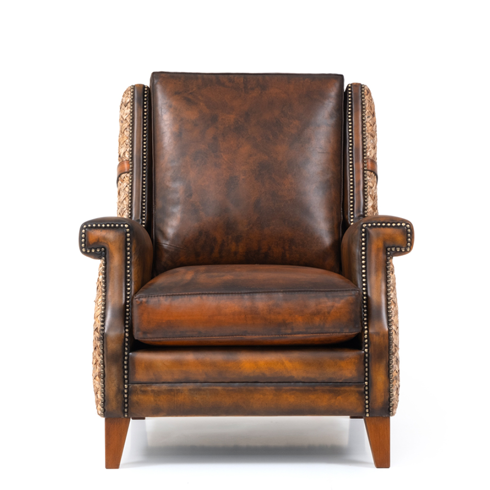 Deri döşemeli, masif ahşap iskeletli berjer.