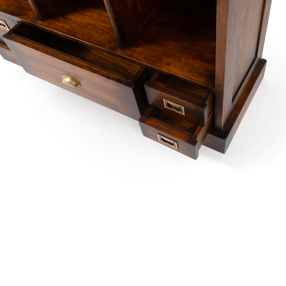 Yacht koleksiyonuna ait, üstü raflı ve altı çekmeceli masif bölmeli kitaplık.