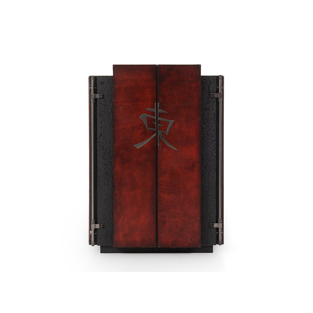 İtalyan sıva boya uygulamasıyla elde edilen özel yüzey dokusuna sahip, metal detaylarla tasarımı güçlendirilmiş vitrin.