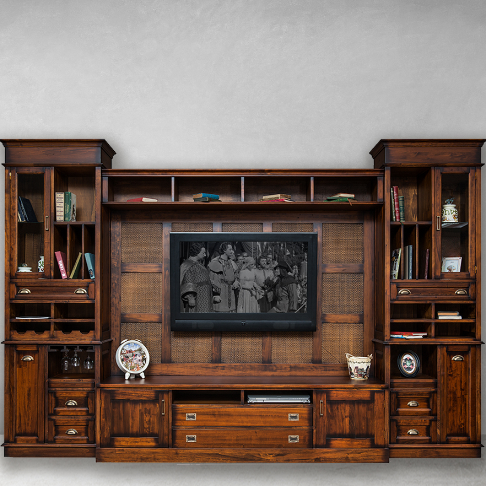 A writing desk from a yacht collection, made of solid wood with brass details.