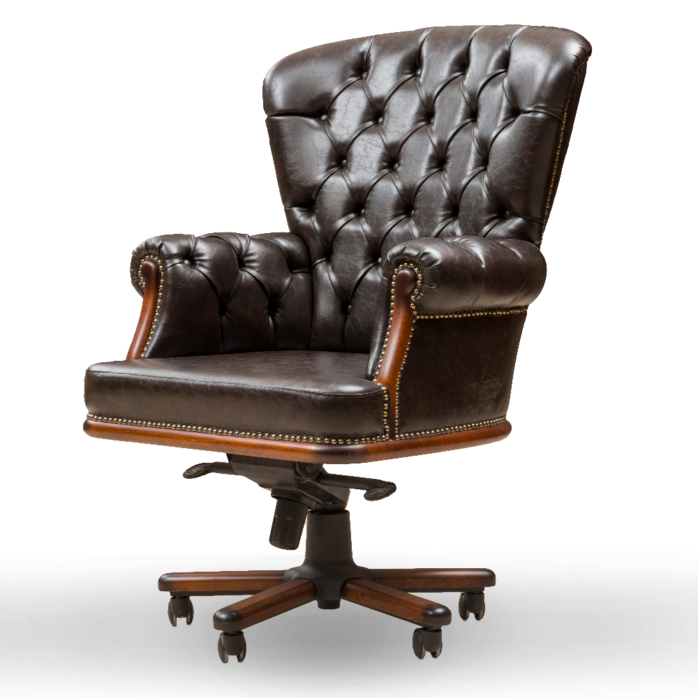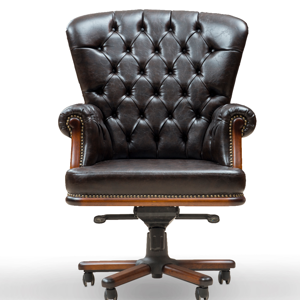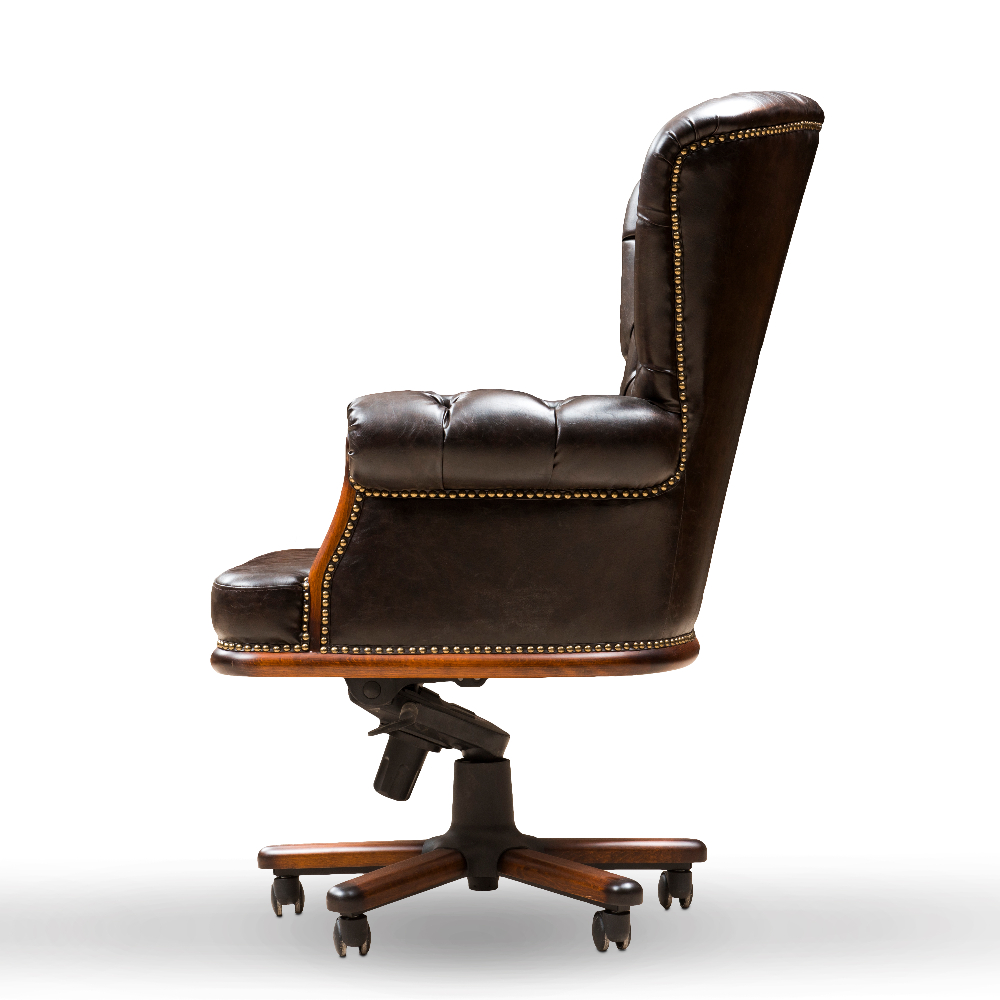 Quilted, solid office chair with real leather upholstery.