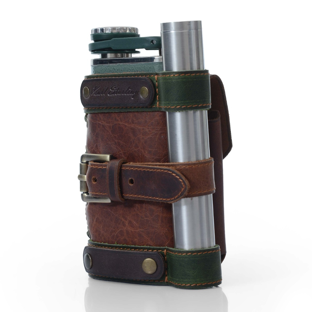 It is a case with Vaketa leather protection and multifunctional flask. It comes with a sealed, dishwasher-safe, BPA-free stainless steel flask and a steel cigar measuring 25mm*160mm*25mm.