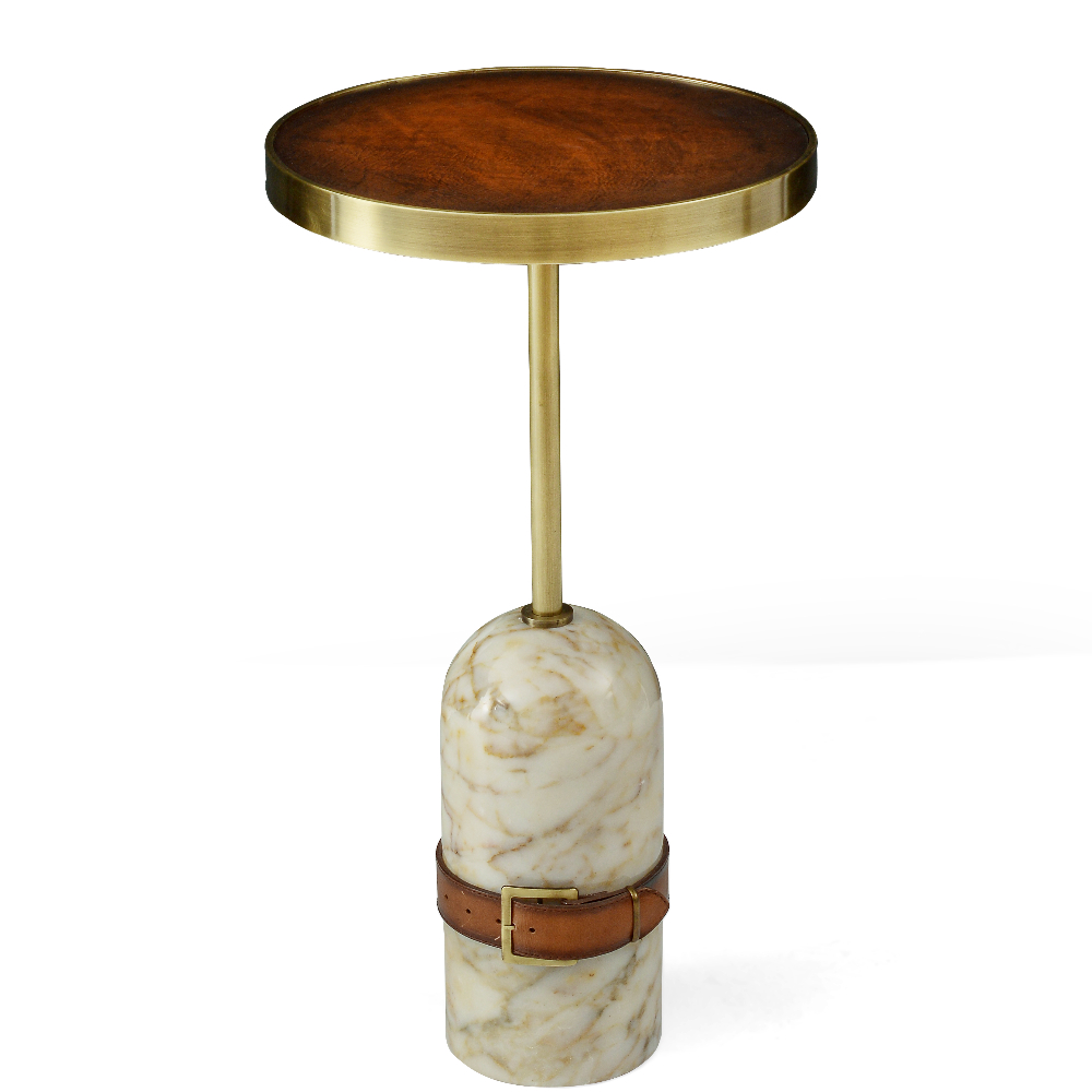 Side table with belt detailing, leather table and marble legs. ***EACH PRODUCT ...