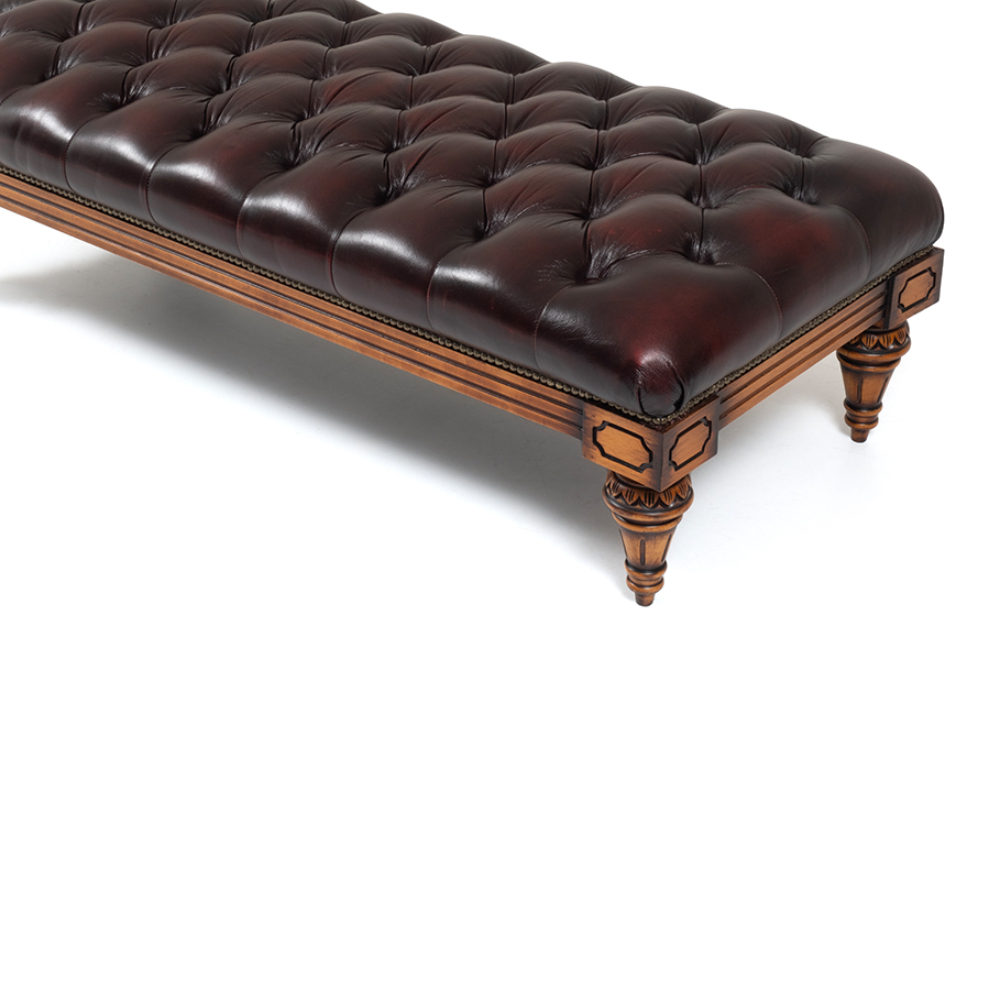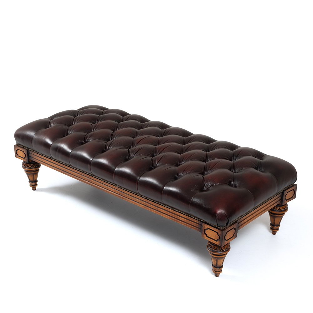 Ottoman with wooden legs.