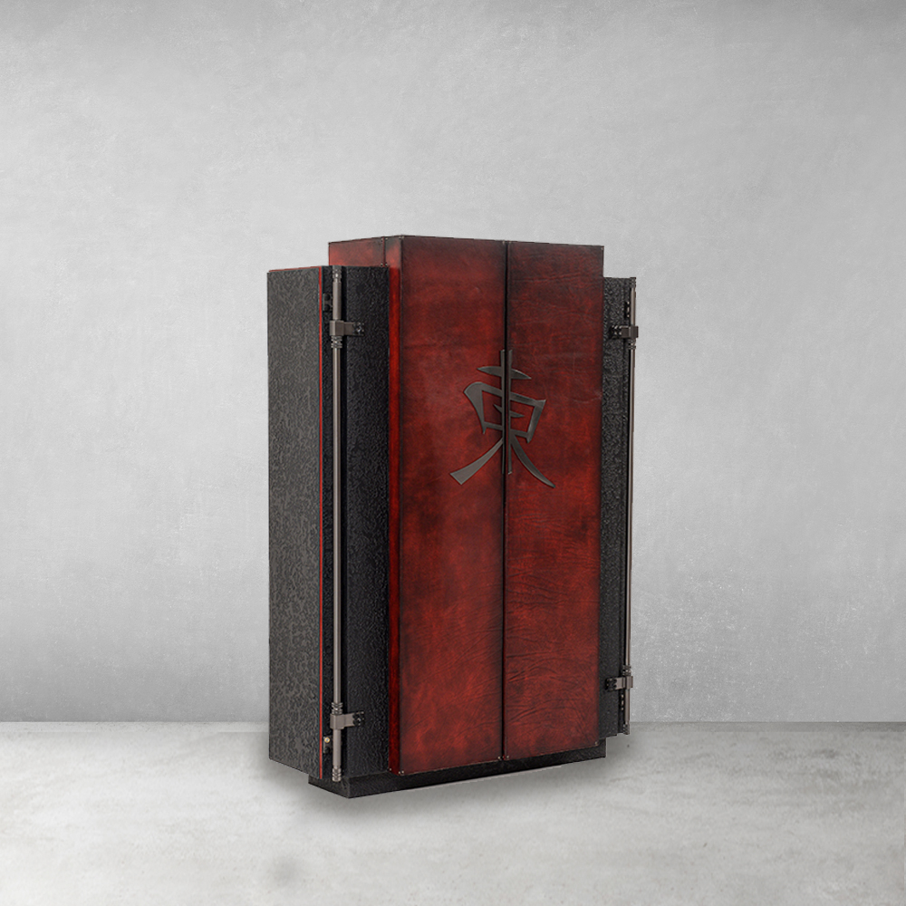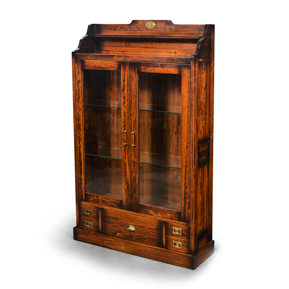 A solid wood display cabinet from the Yacht collection, with a glass door and shelves on top.