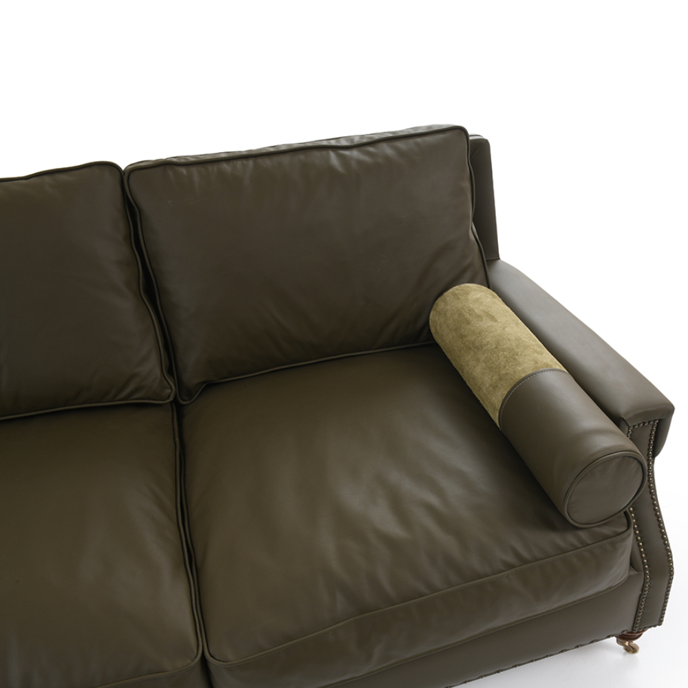 Three-seater sofa upholstered in genuine leather.