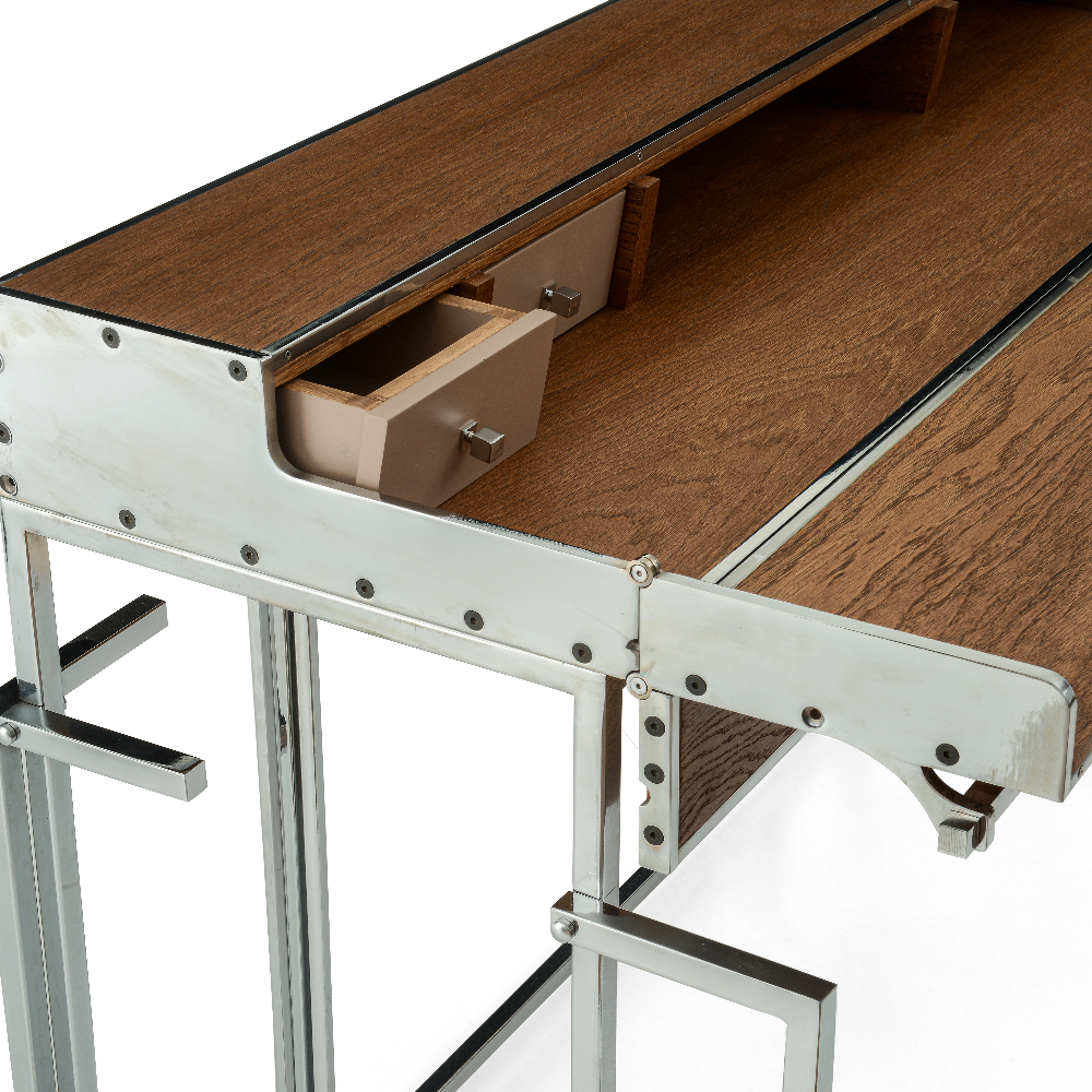 Metal konstrüksiyonlu, katlanır ve çekmeceli masa.