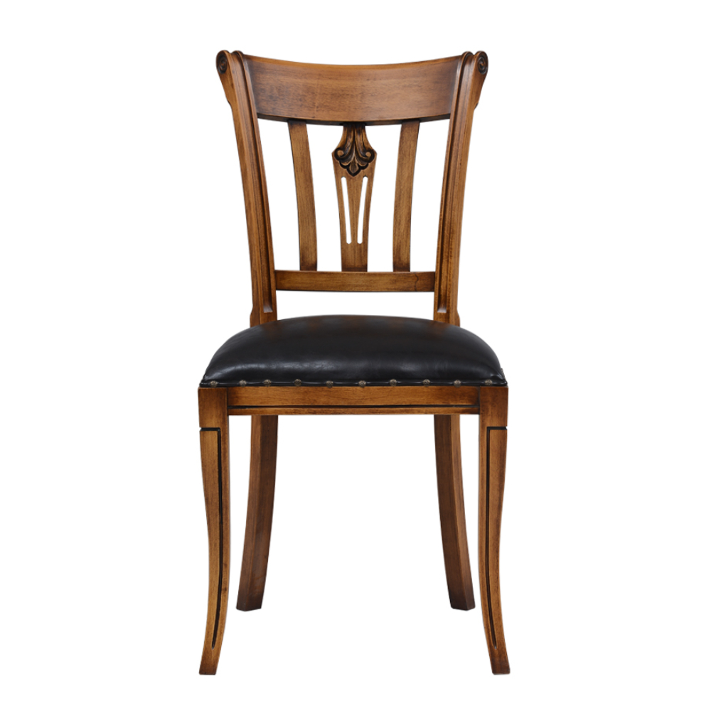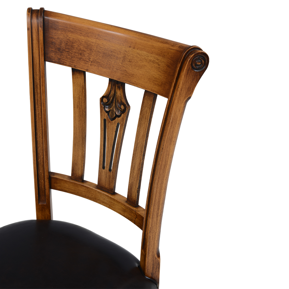 Ahşap ve oymalı, suni deri döşemeli sandalye.