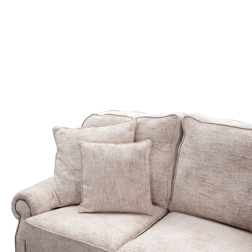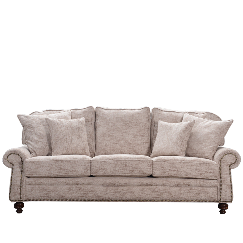 Kumaş döşemeli ve masif ahşap ayaklı üçlü Amerikan koltuk.