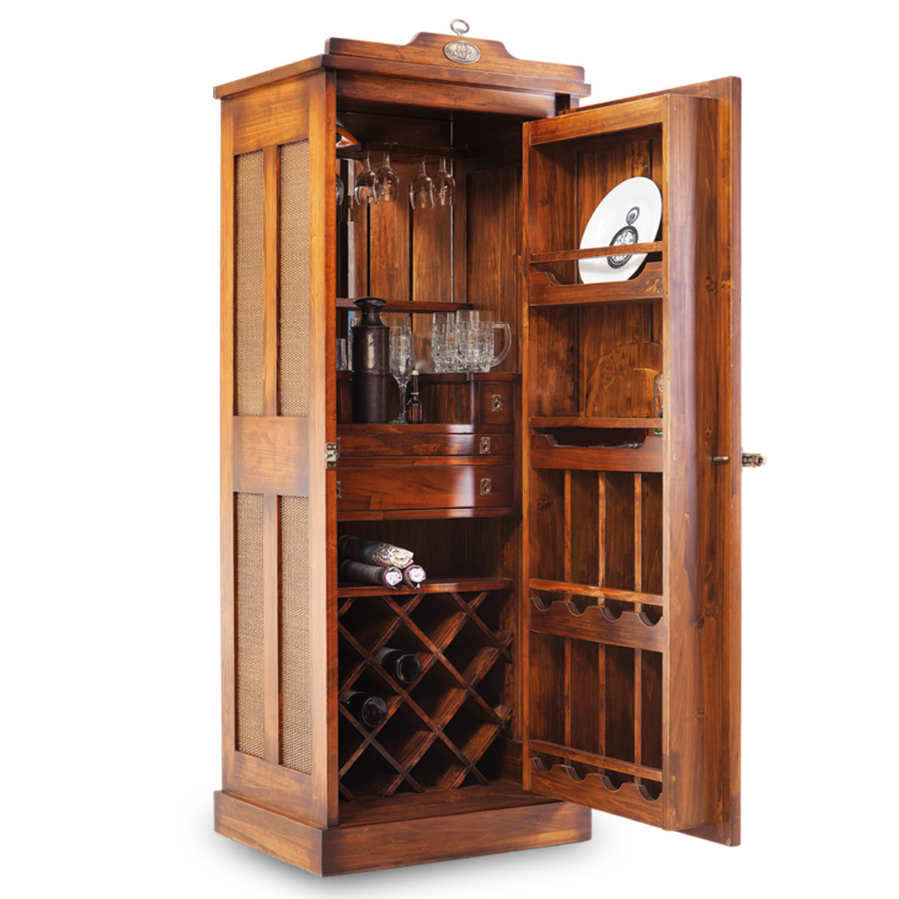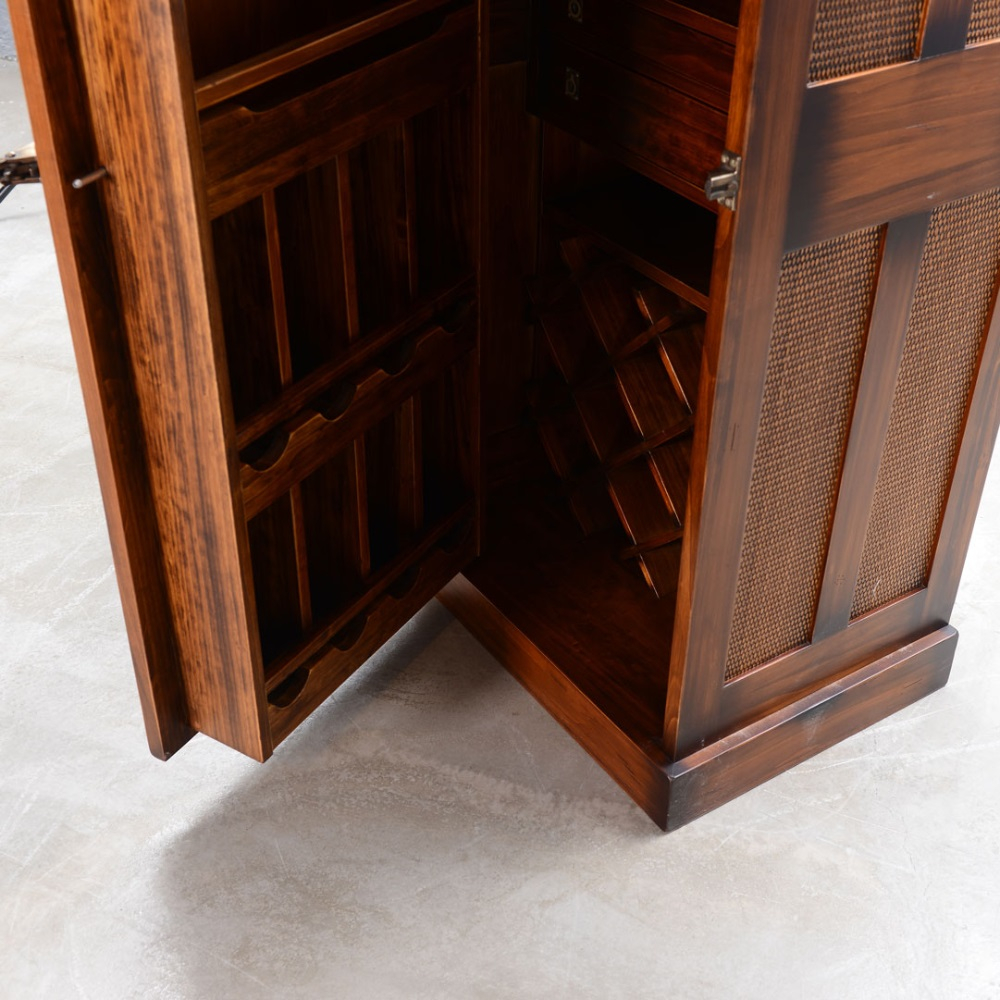 Yacht koleksiyonuna ait hasır detaylı gizli kilitli masif boy bar.
