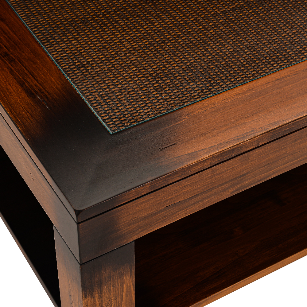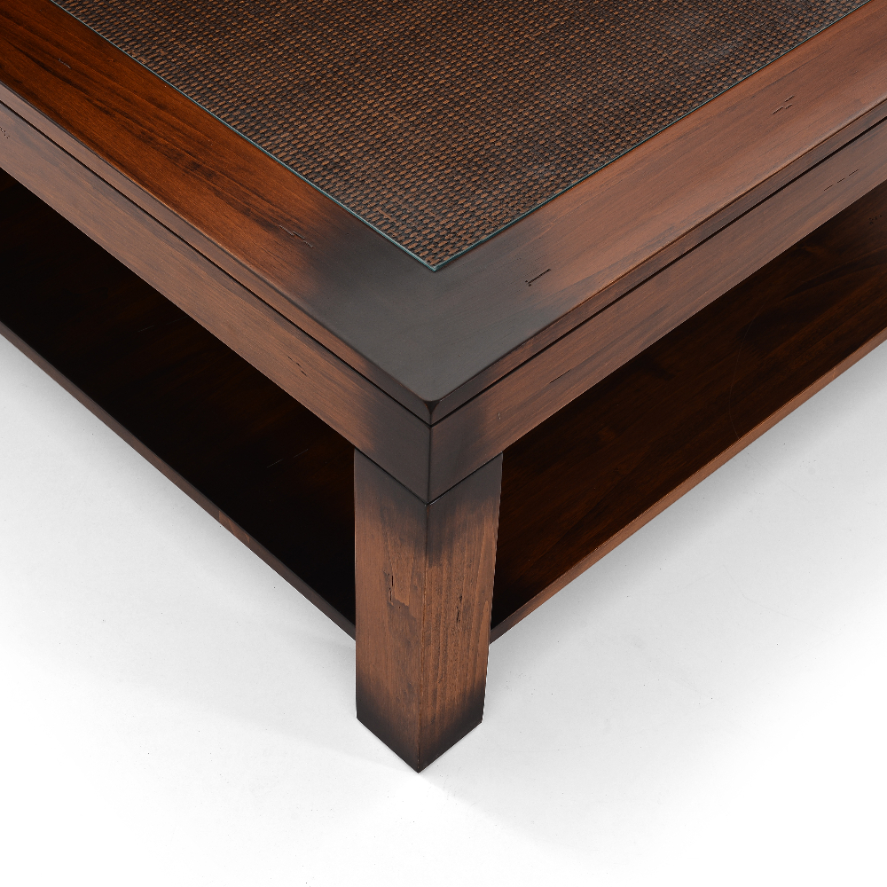 Yacht koleksiyonuna ait masif , hasır detaylı üst tablası camlı orta sehpa.