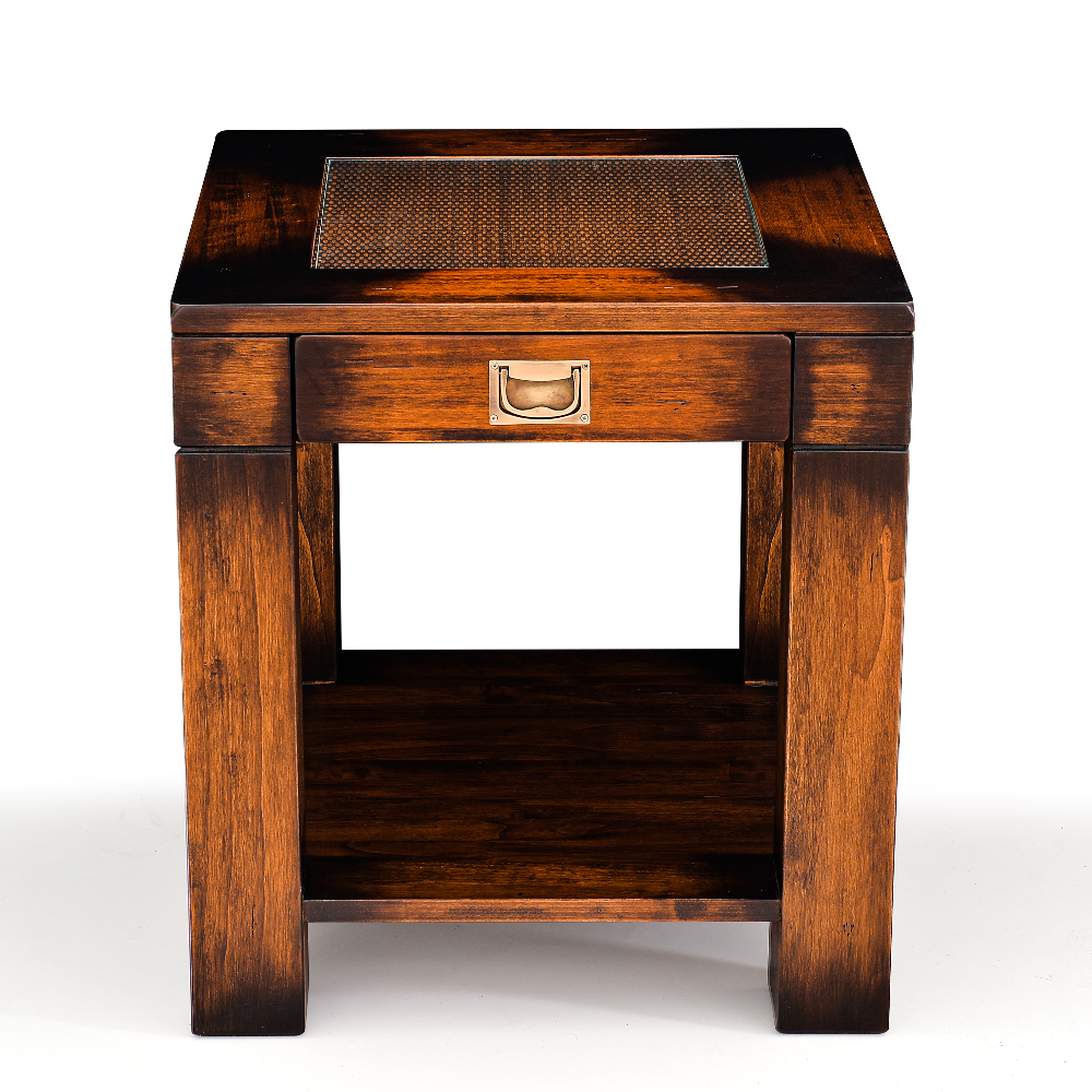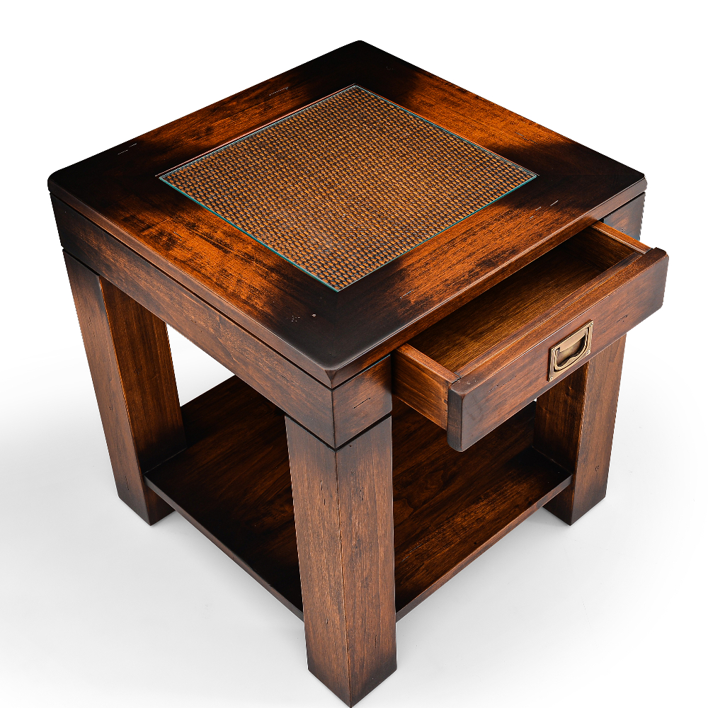 Yacht koleksiyonuna ait masif , hasır detaylı üst tablası camlı yan sehpa.