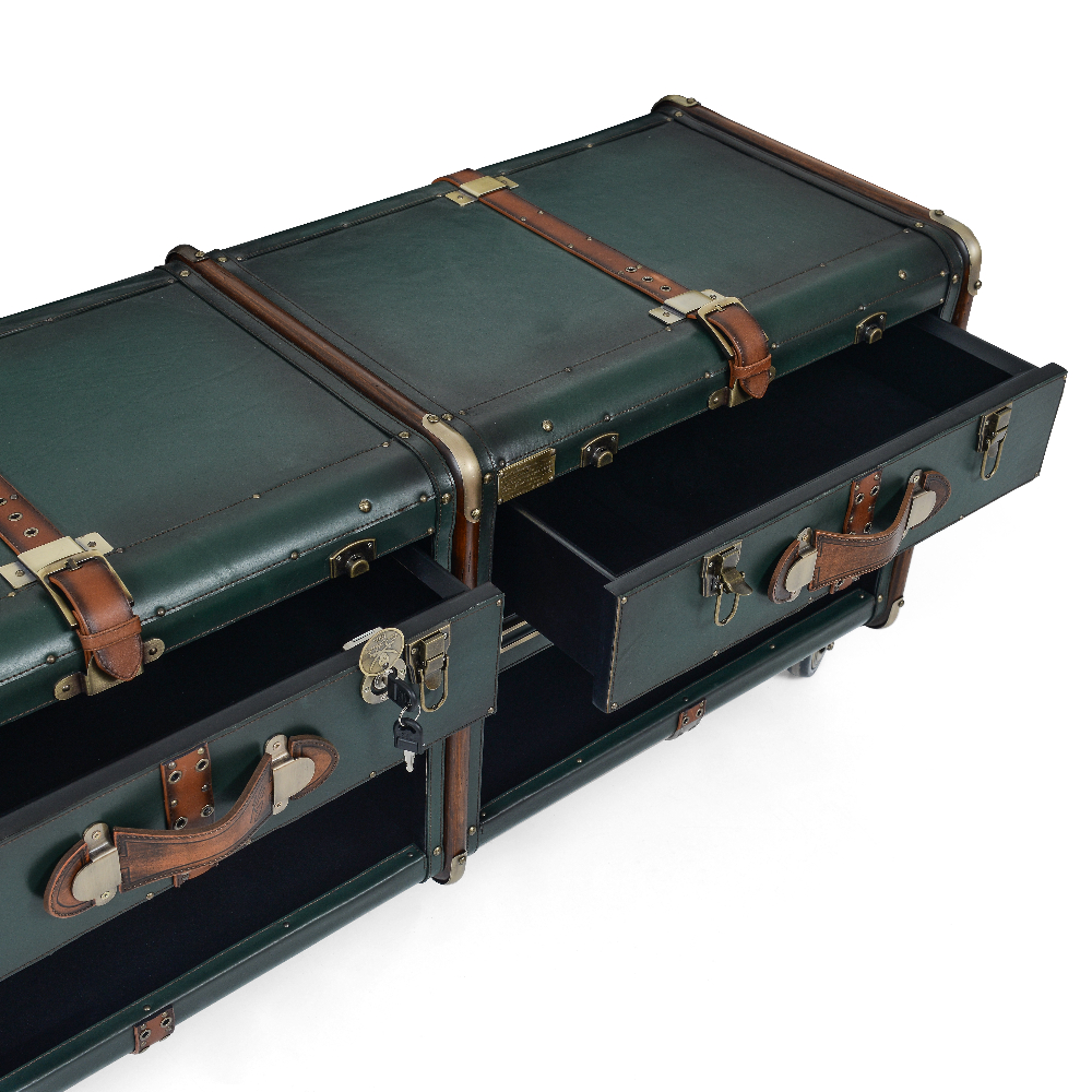 Natural Vaketa deri kaplama ve pirinç aksesuarlı, çekmeceli tv sehpası. ***DERİNİN DOĞAL ...