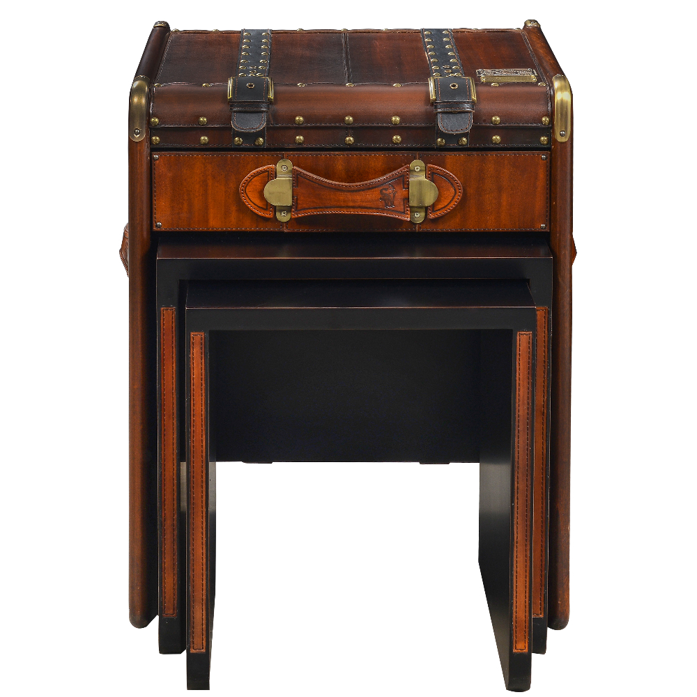 Natural Vaketa deri kaplama ve pirinç aksesuarlı zigon sehpa.