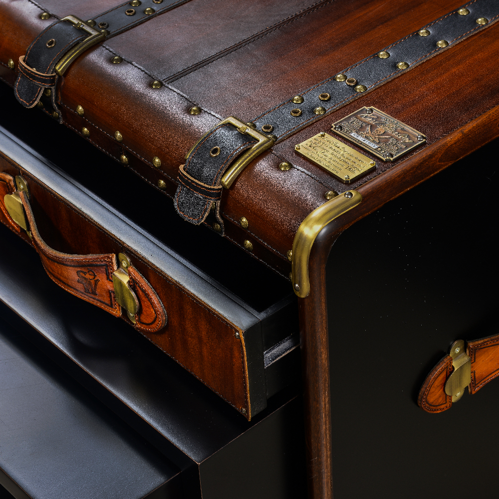 Natural Vaketa deri kaplama ve pirinç aksesuarlı zigon sehpa. ***DERİNİN DOĞAL ...