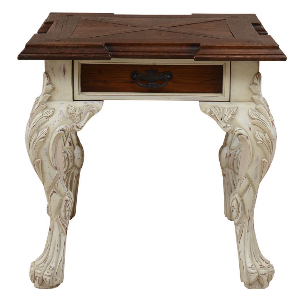 Exclusive koleksiyonuna ait ayaklarında oymalı detaylar bulunduran, çekmeceli, masif yan sehpa.