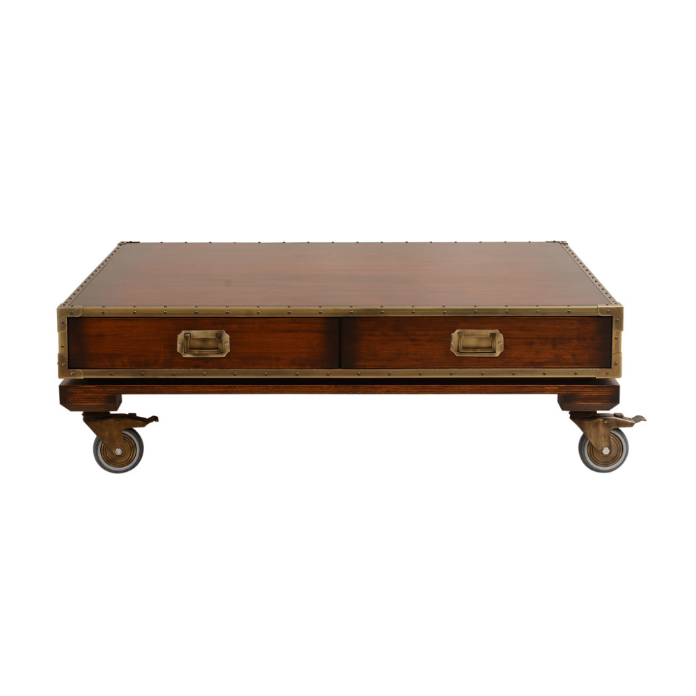 Loft koleksiyonuna ait pirinç kaplamalı tekerlekli masif orta sehpa