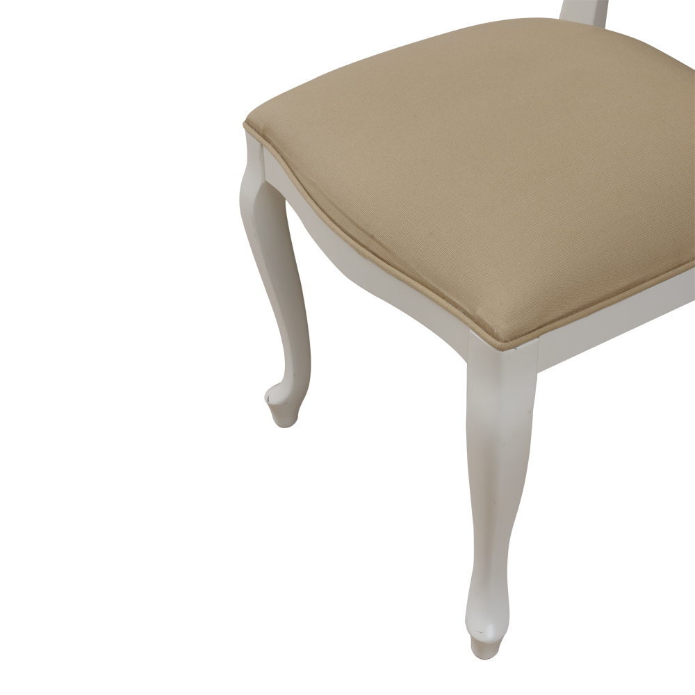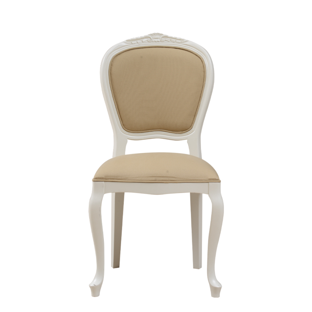 Ahşap üzeri beyaz ipek mat lake boyalı, kumaş döşemeli sandalye.