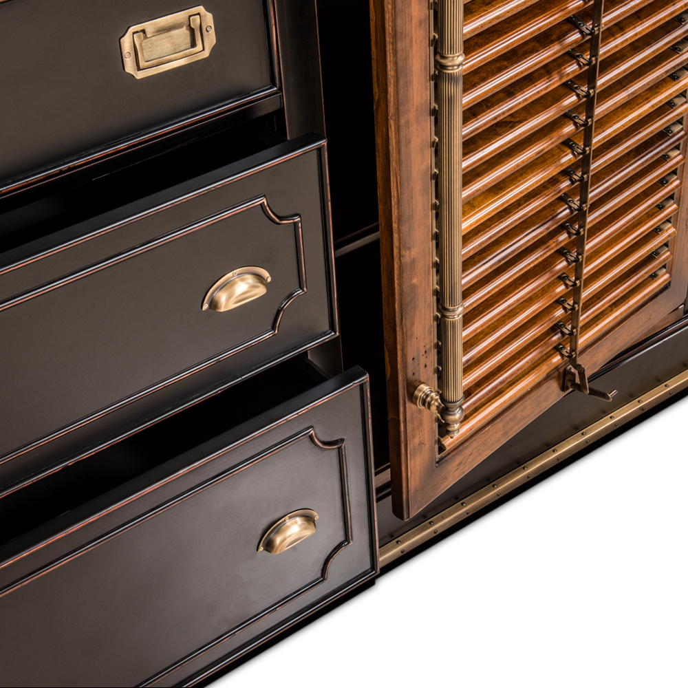 Exclusive koleksiyonuna ait, pirinç kaplama detaylı, çok çekmeceli, kapakları hareketli panjurlu ...