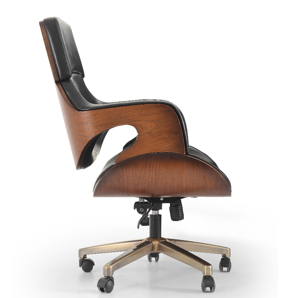 Suni deri döşemeli, tütün renk, mekanizmalı sandalye.