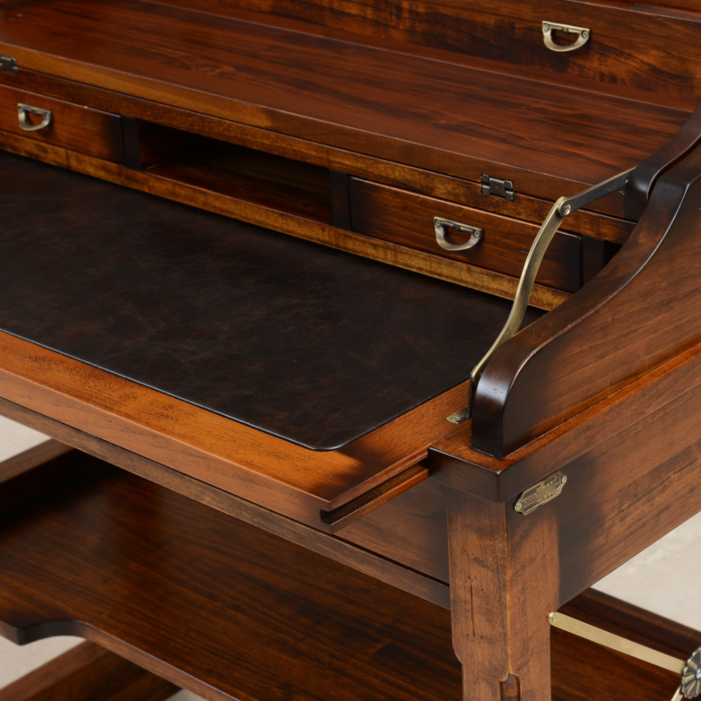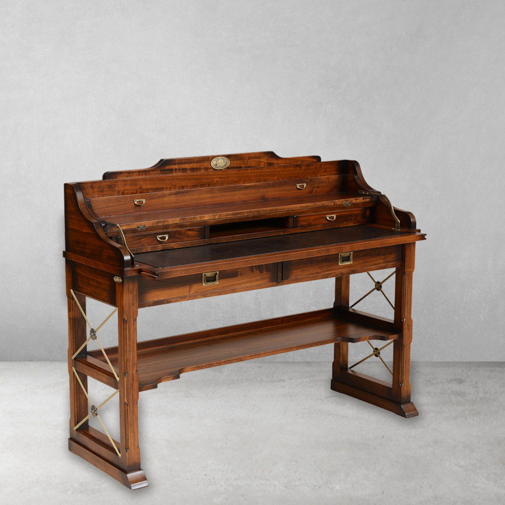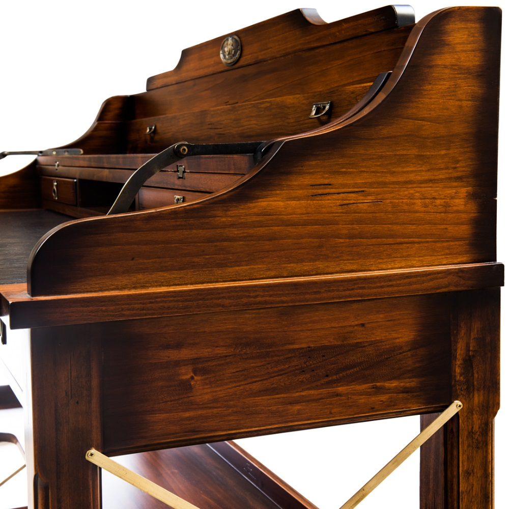 Yacht koleksiyonuna ait, çekmeceli, pirinç kaplama detaylı masif sekreter masa.