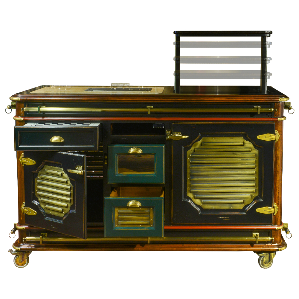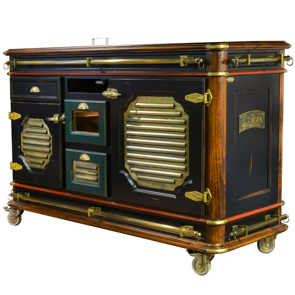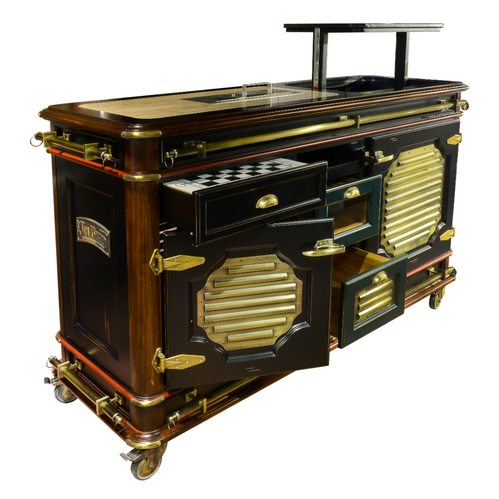 Craft koleksiyonuna ait pirinç kaplama ve panjur detaylı masif bar
