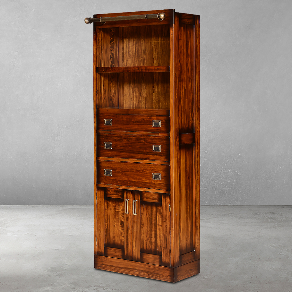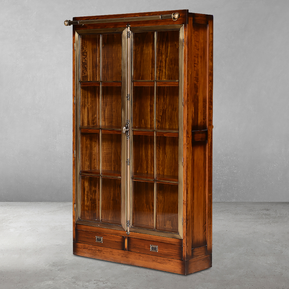 Yacht koleksiyonuna ait, raflı, çift kapaklı, çekmeceli, pirinç detaylı masif modül.