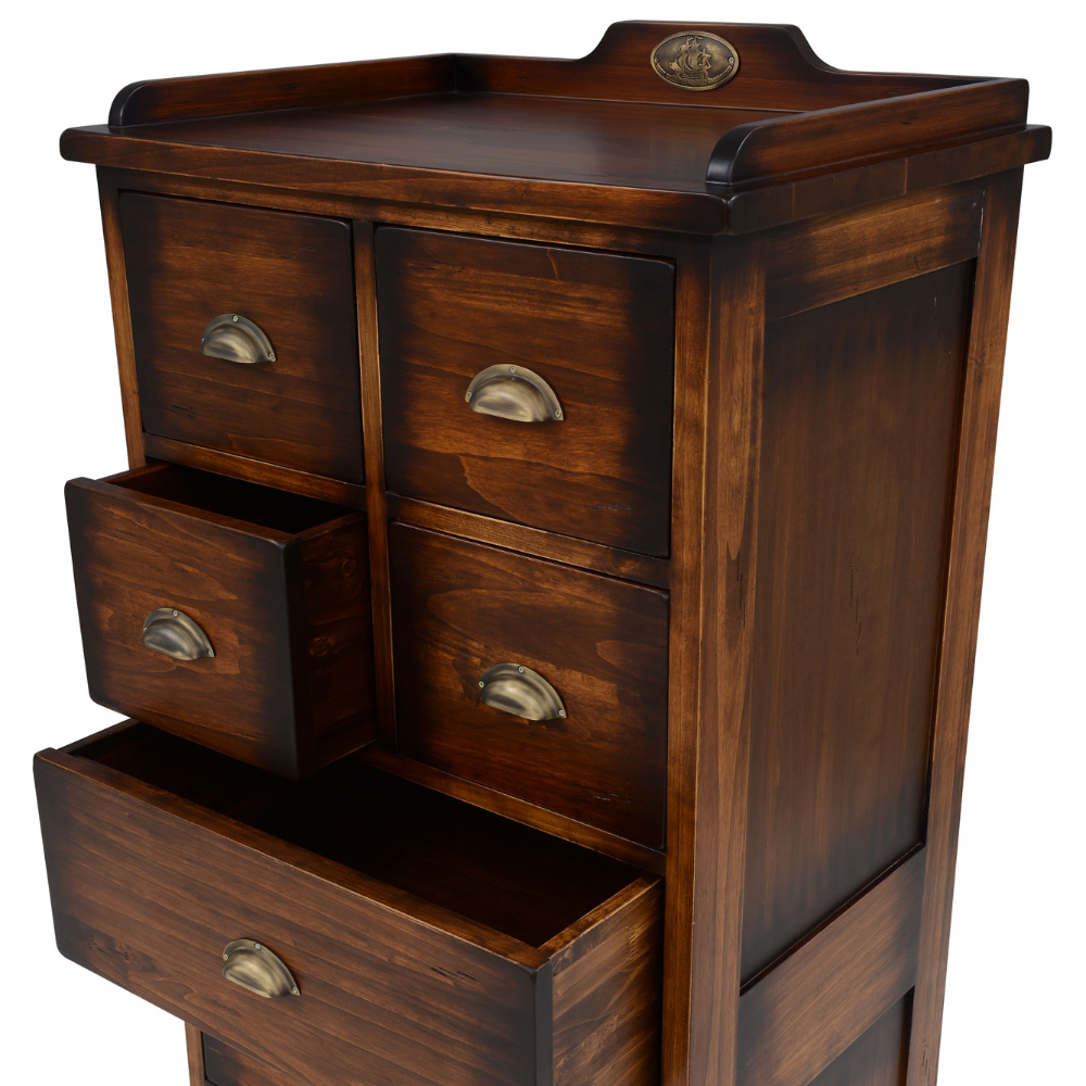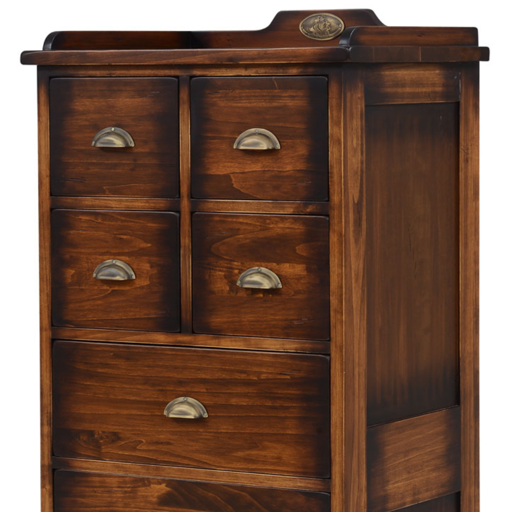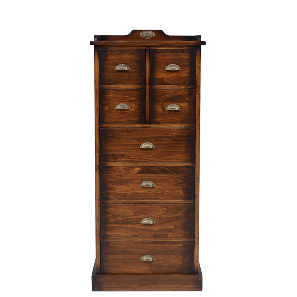 Pirinç kulplu çok çekmeceli masif çamaşırlık.