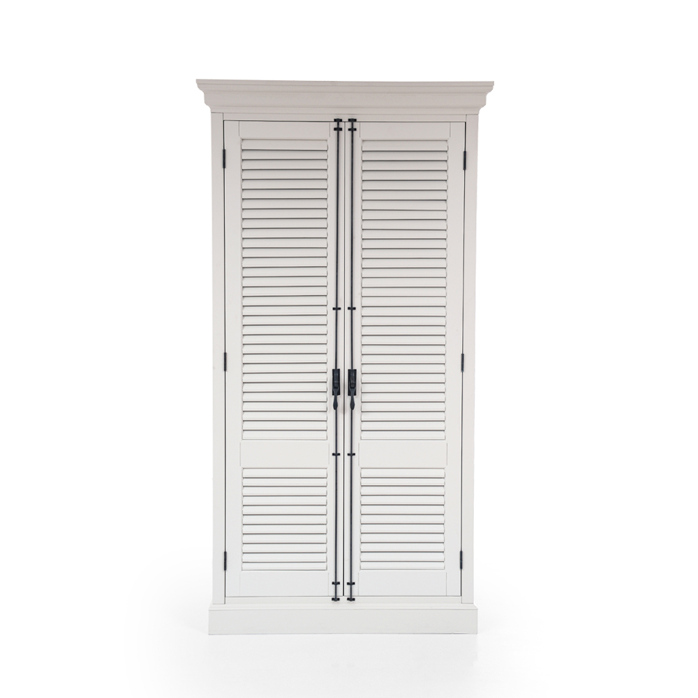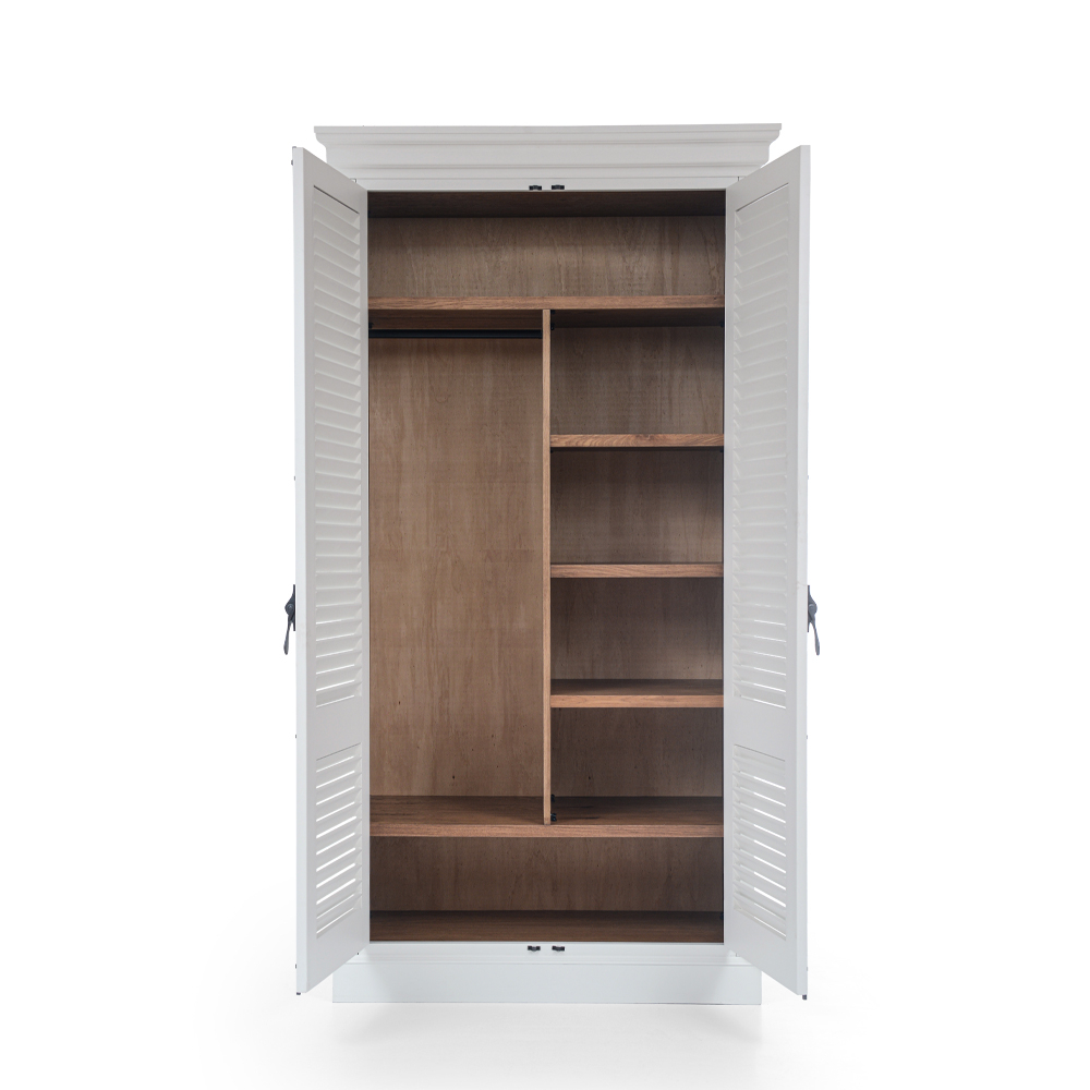 Sabit panjurlu, pirinç ispanyolet aksesuarlı iki kapaklı gardrop.